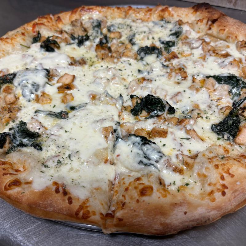 Mozzarella, Grilled Chicken, Spinach, Alfredo Sauce